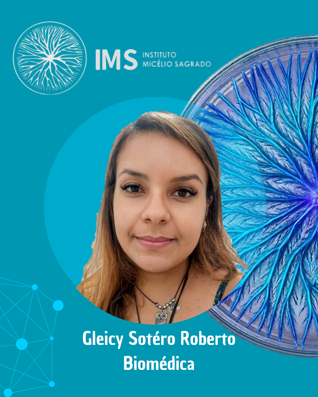 Atualmente, participa como pesquisadora do Instituto Micélio Sagrado, contribuindo para o desenvolvimento de conhecimento responsável sobre os fungos e sua relação com a sociedade.
